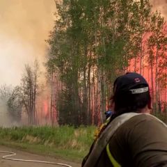 | WARNING: PROFANITY Video shows firefighters responding to a large wildfire in Alberta's East Prairie... |